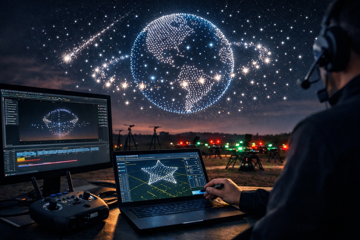 Programming a drone show is nothing like writing code for a website or an app. It is a multi-disciplinary process that combines 3D animation, aerospace engineering, and real-time computing.